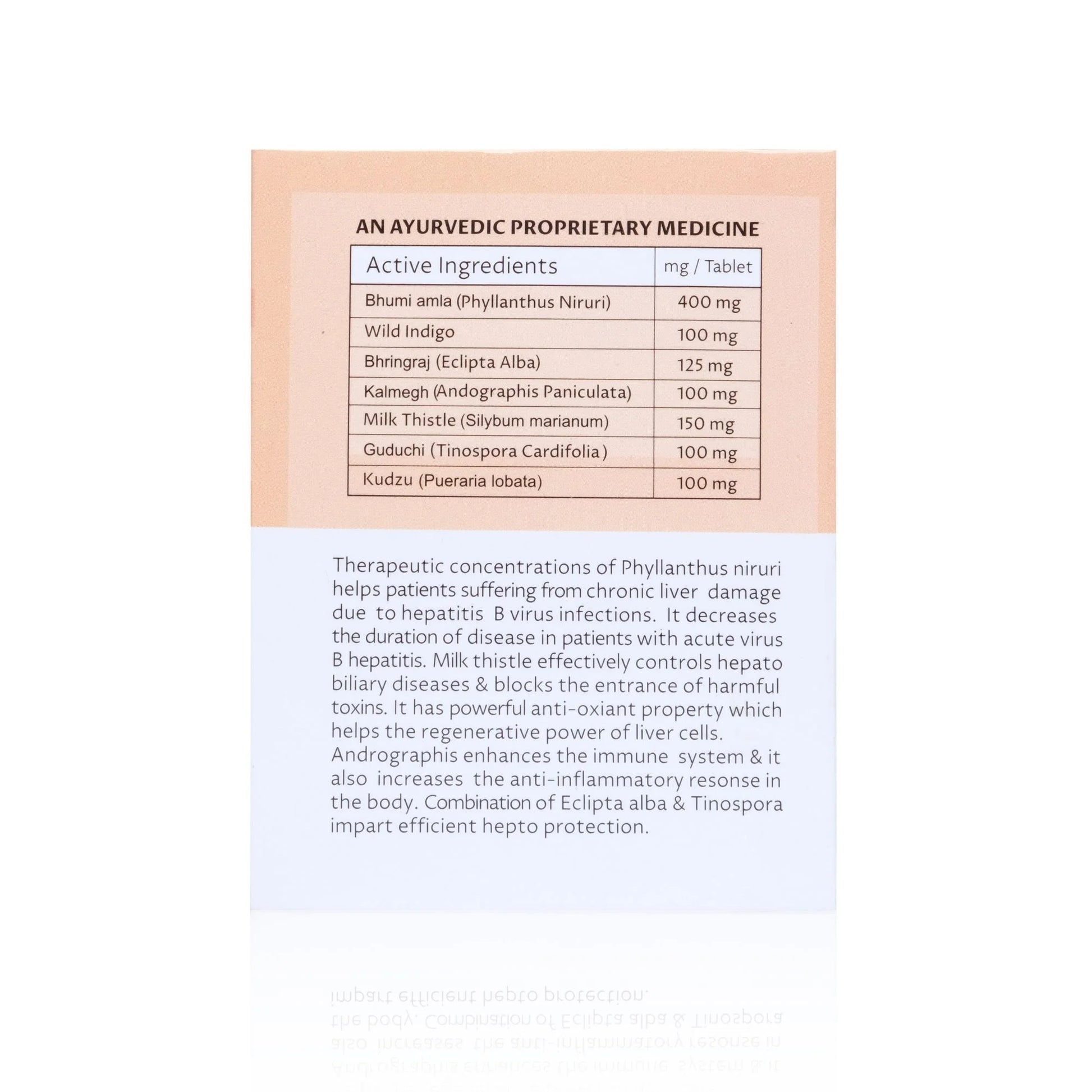 Bhumi Amla (Phyllanthus niruri) 400mg, Wild Indigo 100mg, Bhringraj (Elipta Alba) 125 mg, Kalmegh (Andographis paniculata) 100mg, Milk Thistle (Silybum marianum) 150mg, Guduchi (Tinospora Cardifolia) 100mg, Kudzu (Pueraria lobata) 100mg.