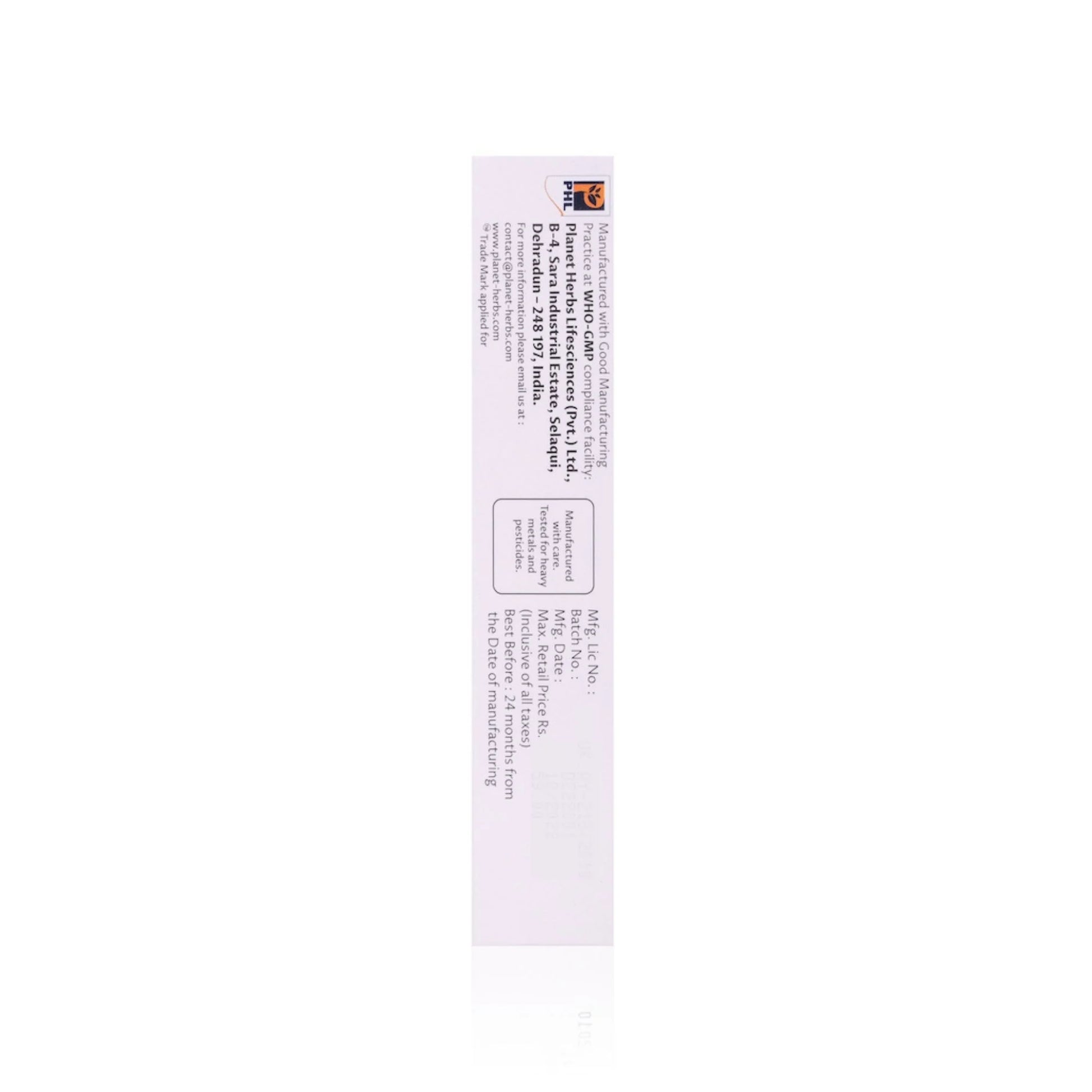Marketed By: Planet Herbs Lifesciences Pvt. Ltd., 7/1 Pritam Road, Dehradun, Uttarakhand, India.